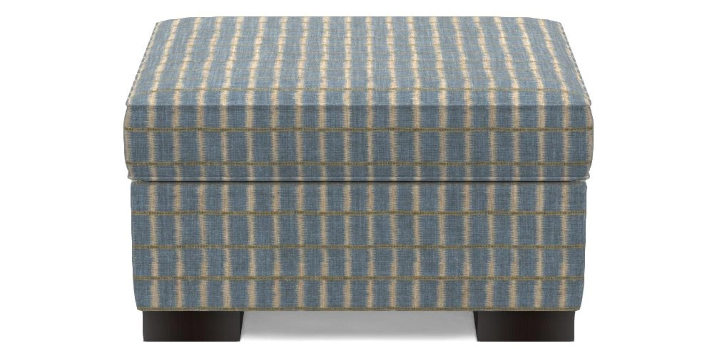 • Wadenhoe Bespoke Storage Footstools in V&A Threads of India on Linen - Ikat Mirage : Sky
