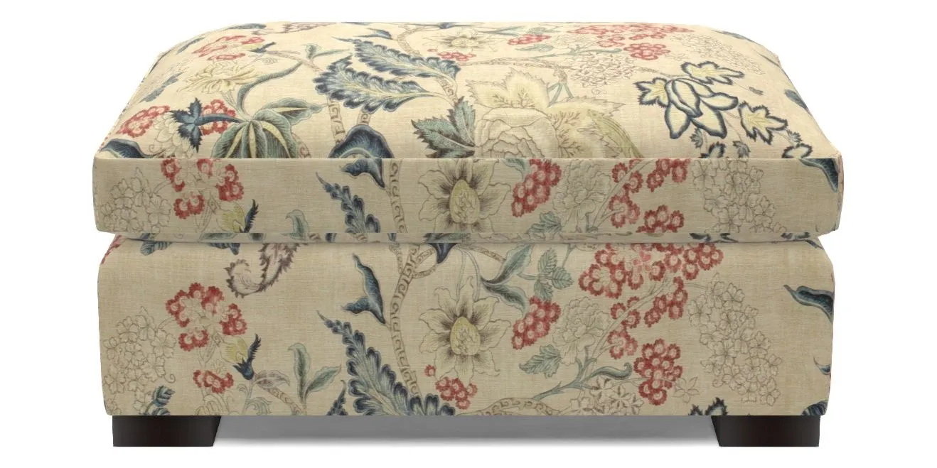 Wadenhoe Bespoke Standard Footstools in Floral Linen : Alice in Wonderland Nude Raspberry