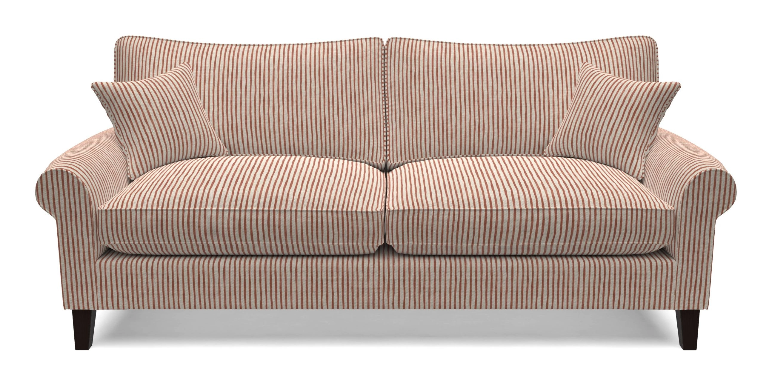 • Waverley scroll arm 4 Seater Sofa in Gully Stripe : Gallery Red